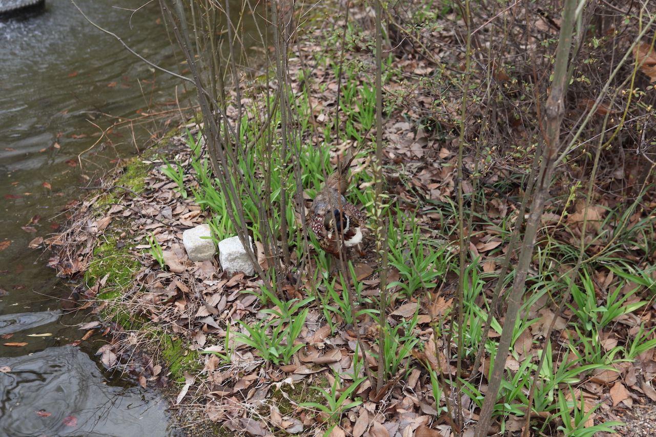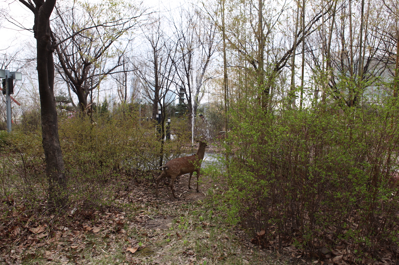 Install taxidermy animals in a garden. in Hongik University, Seoul